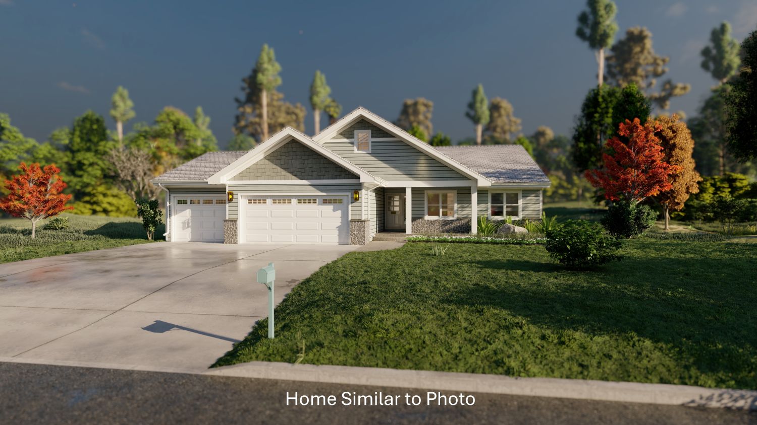 Gorgeous new construction featuring 1,706sf with 3 bedrooms and 2 baths in the Village of Howard. Inviting front porch with porch posts. Front foyer leads to the living room featuring a gas fireplace. Kitchen features an island/snack counter, stainless steel dishwasher and microwave, and a large walk-in pantry. Master bedroom offers two closets, a private bath with double sinks, and a walk-in shower. Convenient 1st-floor laundry with lockers & sink. Attached 3-stall garage. Full basement features an egress window and is plumbed for a future bath. Exterior features horizontal vinyl siding per plan, shakes in roof peaks, and brick per plan. Home includes central air, a passive radon system, and a 1 year builder warranty. Main photo is computer generated. Photos are similar but may not be exact. Virtual staging in photos.