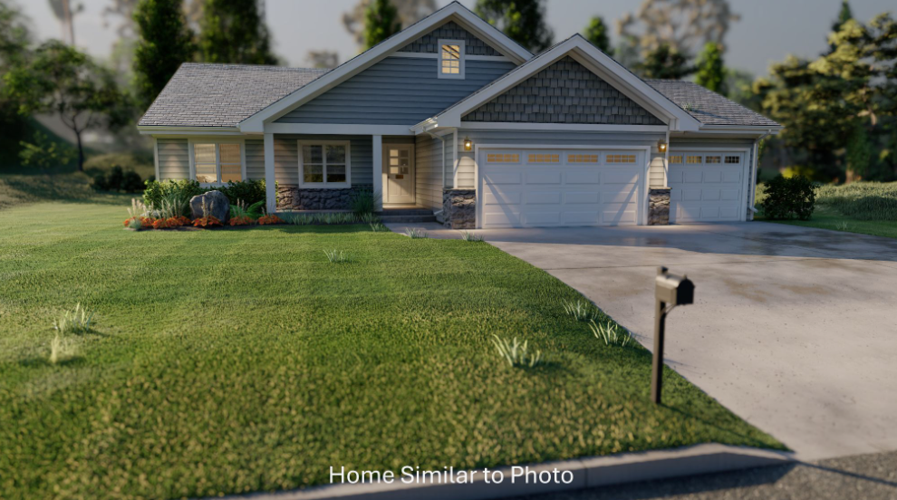 Gorgeous new construction featuring 1,706sf with 3 bedrooms and 2 baths in the Village of Howard. Inviting front porch with porch posts. Front foyer leads to the living room featuring a gas fireplace. Kitchen features an island/snack counter, stainless steel dishwasher and microwave, and a large walk-in pantry. Master bedroom offers two closets, a private bath with double sinks, and a walk-in shower. Convenient 1st-floor laundry with lockers & sink. Attached 3-stall garage. Full basement features an egress window and is plumbed for a future bath. Exterior features horizontal vinyl siding, shakes in roof peaks, and brick per plan. Home includes central air, a passive radon system, and a 1 year builder warranty. Main photo is computer generated. Photos are similar but may not be exact. Virtual staging in photos.
